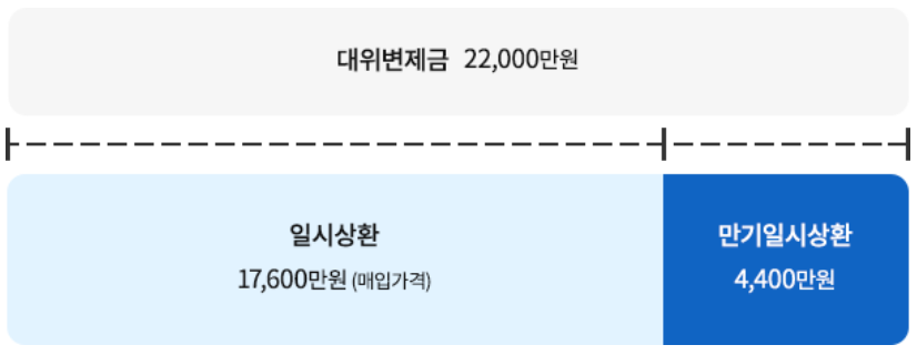 이렇게 집을 매각하면, 그 금액만큼 HUG에 진 빚이 일시상환되고, 남은 채무(대위변제금-매입가격)는 8년간 이자만 내고 만기에 한 번에 갚거나, 필요시 분할상환도 가능합니다.