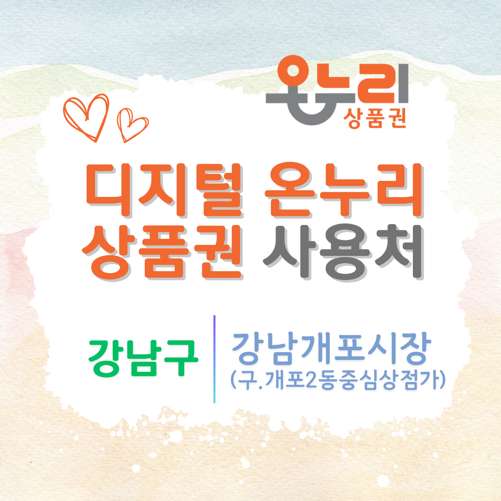 강남구 강남개포시장 에서는 다양한 소상공인 매장에서 디지털온누리상품권을 사용할 수 있습니다.