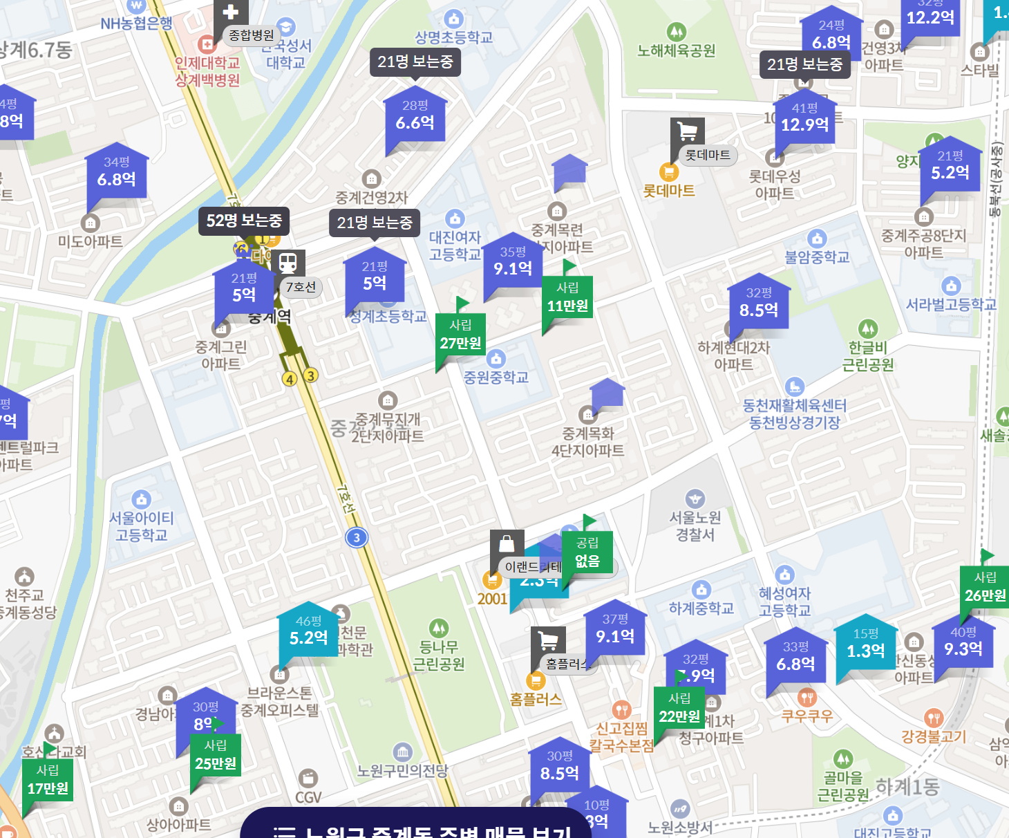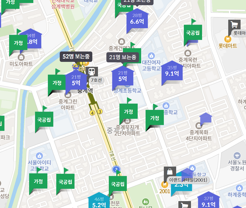 3. 중계 2,3동 학원가 위치